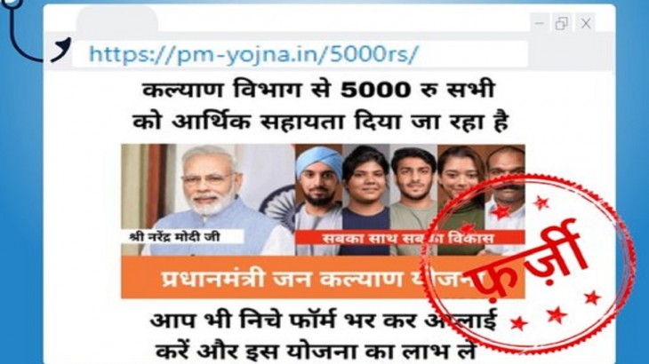 आजकल आए दिन सोशल मीडिया पर सरकारी योजनाओं को लेकर कई भ्रामक जानकारियां शेयर की जा रही हैं । इस जानकारी को देखकर आम जनता लालची हो जाती है और ठगी का शिकार हो जाती है । आपकी जानकारी के लिए बता दें कि, कुछ ऐसा ​ही दावा आजकल सोशल मीडिया पर किया जा रहा है ​जिसमें कहा जा रहा है कि, एक ऑनलाइन फॉर्म भरने के बाद प्रधानमंत्री लोक कल्याण विभाग की तरफ से सभी को करीब पांच-पांच हजार रुपये की आर्थिक मदद दी जाएगी और इतना ही नहीं, इस दावे के साथ वेबसाइट का यूआरएल भी शेयर किया गया है। यह https://pm-yojna.in/5000rs/ है । मगर जब, पीआईबी फैक्ट टीम ने इस वायरल मैसेज का पता किया तो ये दावा पूरी तरह से फर्जी निकला ।